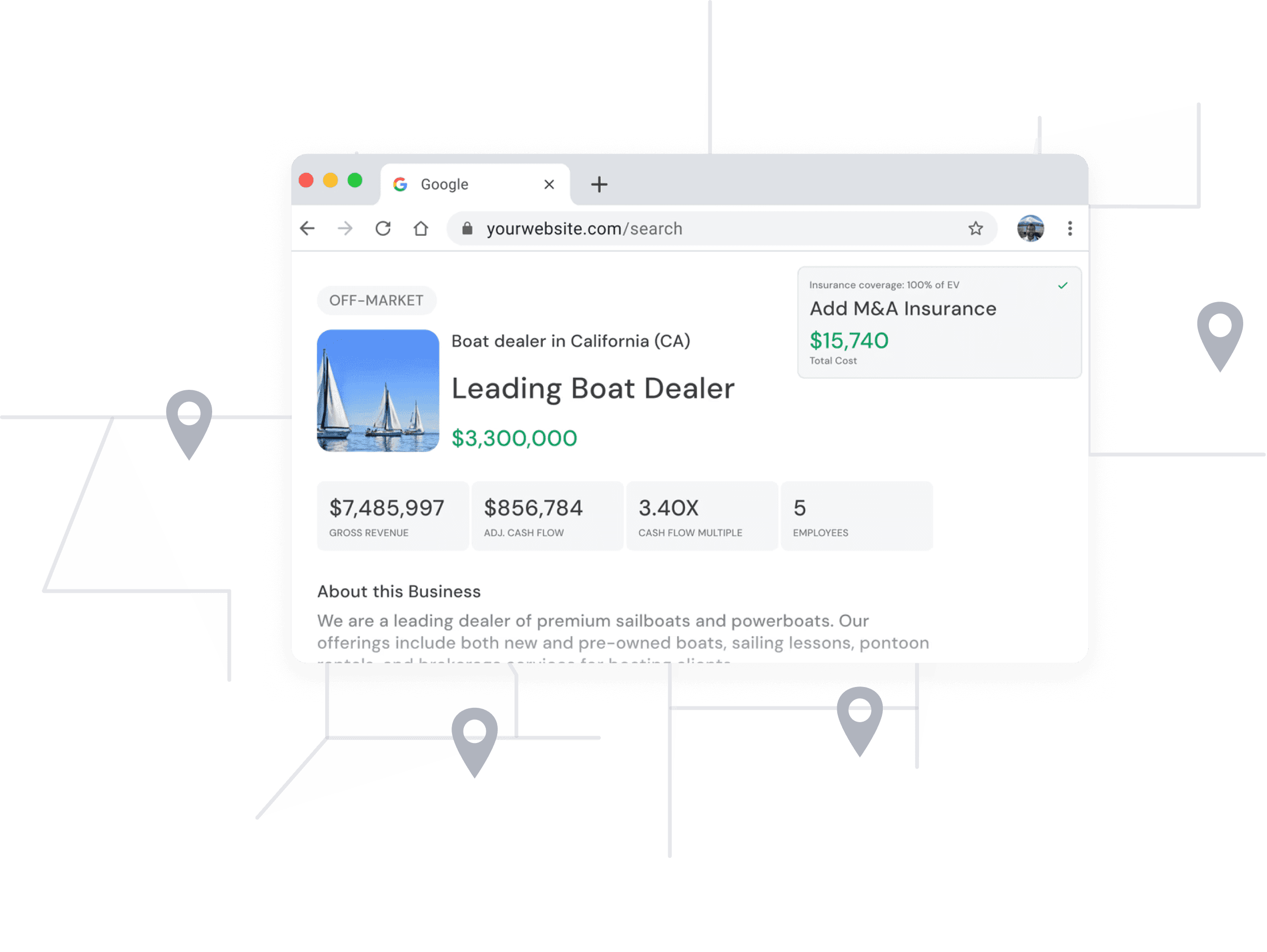 With a single line of code, buyers and sellers can gain seamless M&A Insurance embedded directly into your SMB online deal marketplaces.